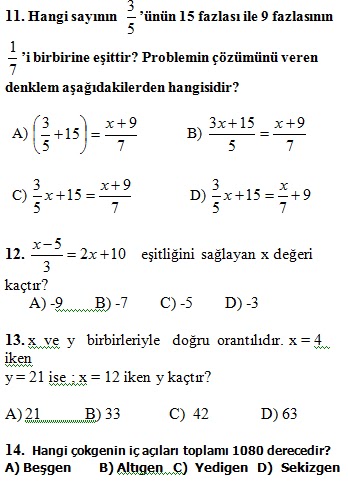 7. Sınıf Matematik 2. Dönem 3. Yazılı Soruları ve Cevapları 2013-2014